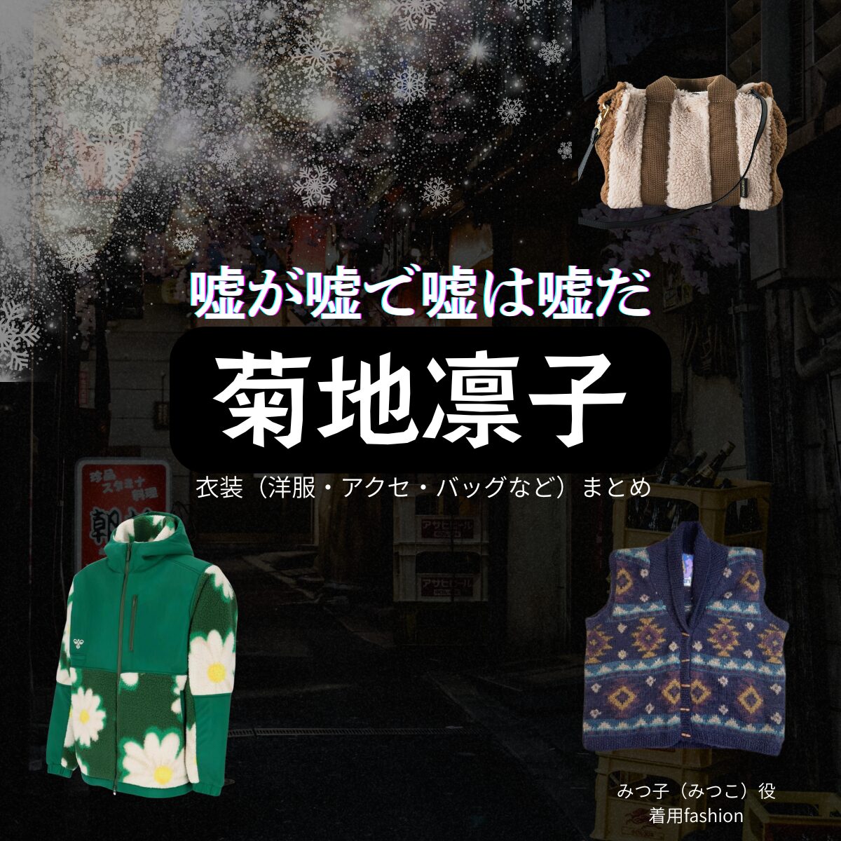 ドラマ【嘘が嘘で嘘は嘘だ(うそがうそでうそはうそだ)】で菊地凛子(きくちりんこ)さんが演じるみつ子(みつこ)役に衣装協力されているドラマの服装(ファッション・コーデ)の「ブランド」や「購入先」の情報をまとめています♪
